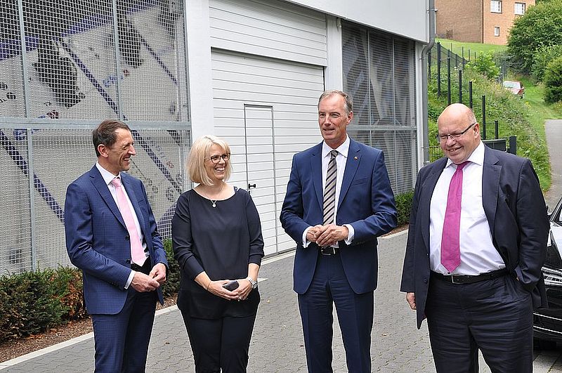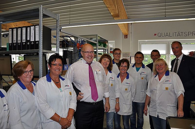 Nach seiner Rede ließ es sich Altmaier nicht nehmen, ein Foto mit einigen Mitarbeitern und Mitarbeiterinnen der Produktion zu machen.