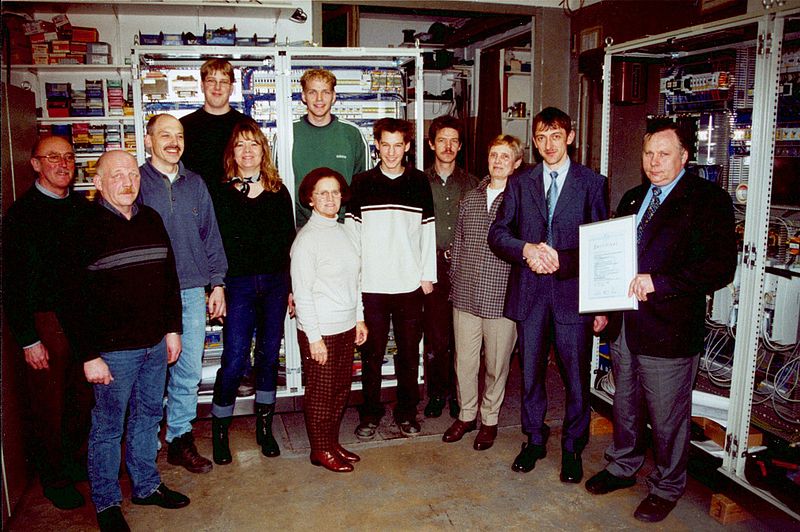 Es war einmal Anfang diesen Jahrtausends, als wir Männer noch Schnurrbart tragen durften. Und die Haarpracht war auch noch größer. Kinder, wie die Zeit vergeht. Übrigens: das Bild datiert aus dem Jahr 2001 und zeigt den damaligen Ortsvorsteher aus Hillmicke (im Bild ganz rechts), der dem eks Team zur Einführung des ersten QS-Systems gratuliert.