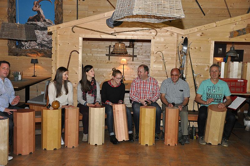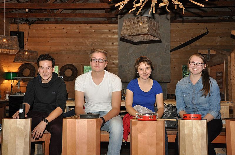 Tatsächlich nämlich trafen wir an einer gemütlichen, großen Holzhütte im Wald ein, in deren Mitte 35 Holztrommeln sowie weitere Percussion-Instrumente lagen. Mit diesen haben wir dann zwei Stunden lang gemeinsam getrommelt, musiziert und eine Menge Spaß gehabt.