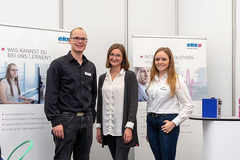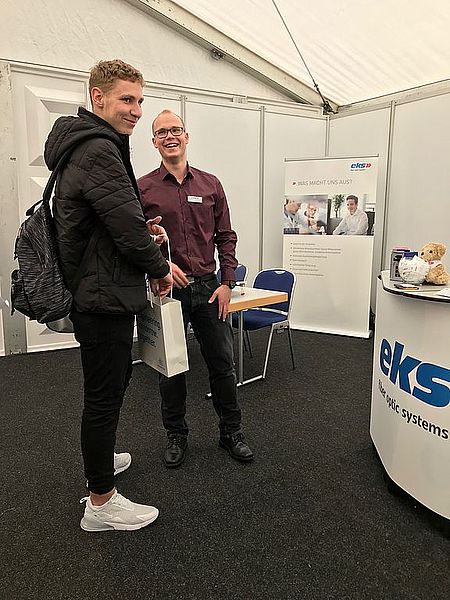 Wir waren inzwischen zum fünften Mal als Aussteller dabei und haben unseren Stand im Zelt auf dem Freigelände aufgebaut. Trotz zeitweisem Regen hatten einige SchülerInnen und ihre Eltern den Weg zu uns gefunden und informierten sich über die Ausbildungsmöglichkeiten bei eks.