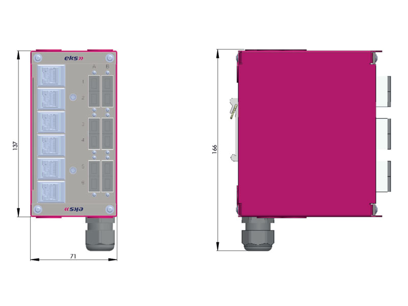 The powder coated stainless steel housing is also magnetizable so that the splice box can easily be affixed to another housing or to a switch cabinet in case of no different tray. Furthermore, FIMP-XL Hybrid has got a clip for DIN rail mounting (35mm) and a kit for wall fastening. Thus, there are space-saving and flexible solutions for mounting our FIMP-XL Hybrid.