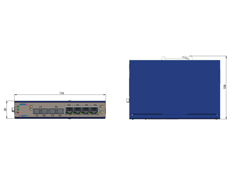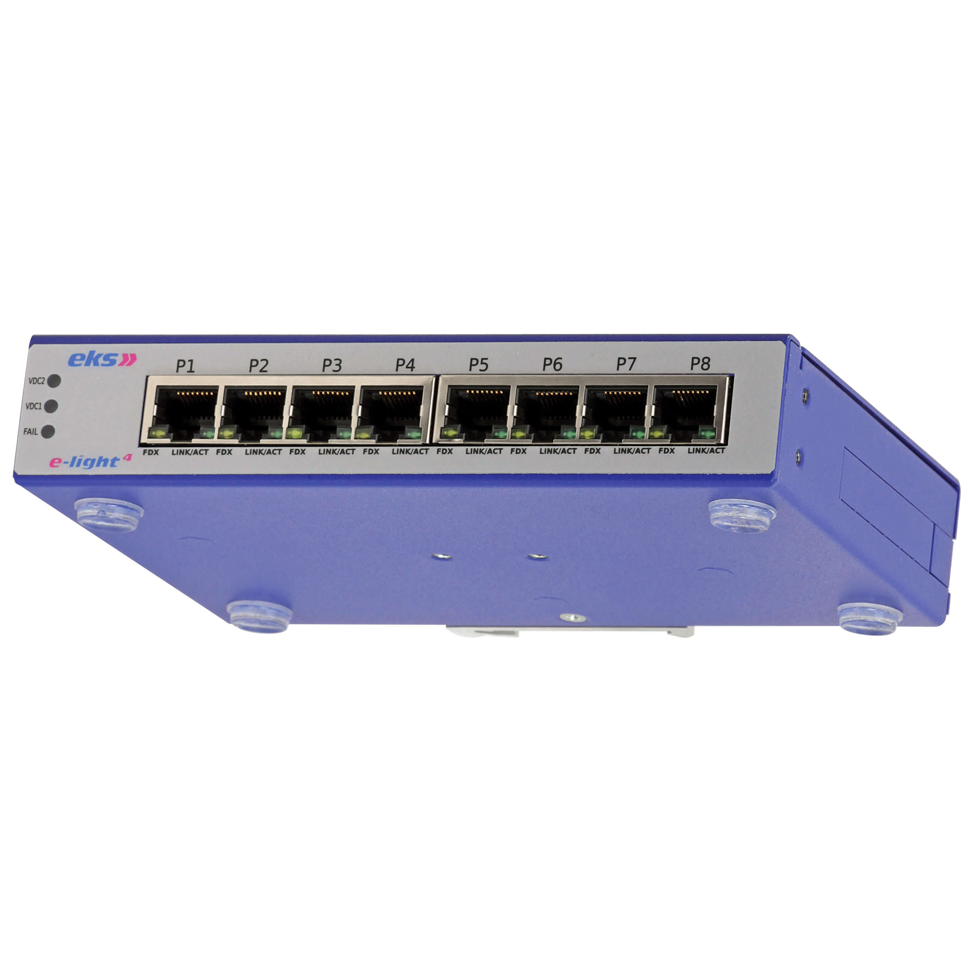 The EL-100-4 series “Essential Line“ comprises five industrial basic switches for Fast Ethernet. Since they are only 3 cm in width they do not need much space. In case of extremely flat installation space the DIN rail clip can be fixed at the side. Apart from that, they can be used in 19’’ racks by using an additional cover at the front.