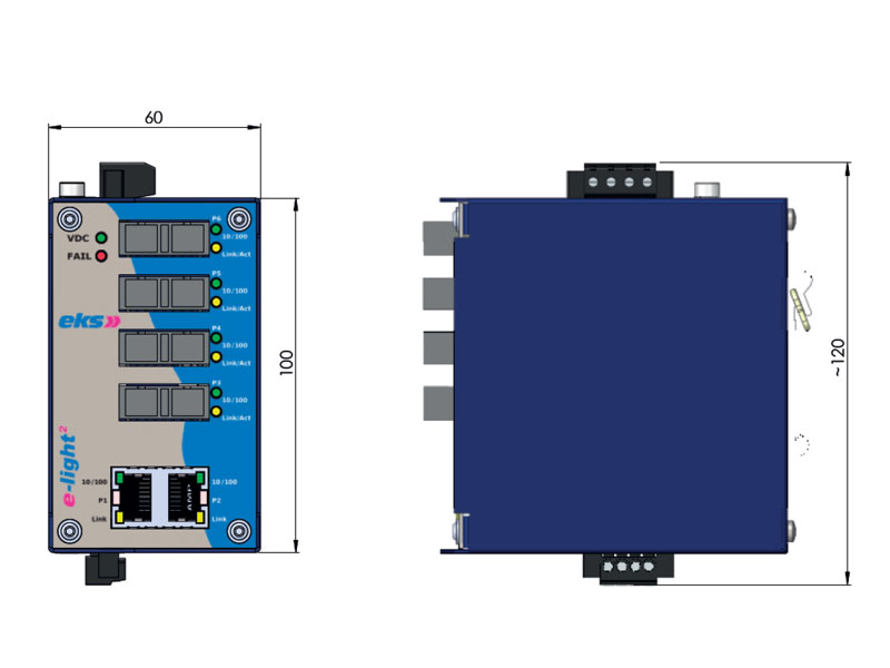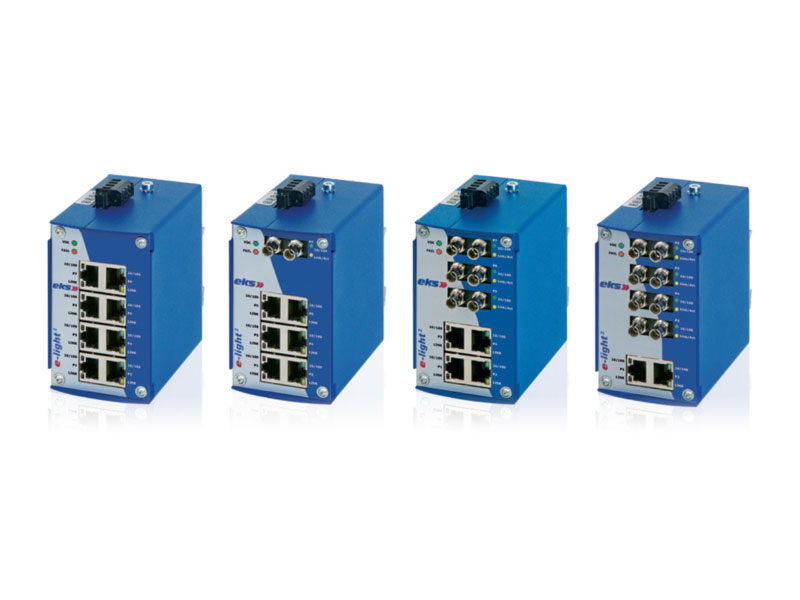 Die Serie EL-100-2 umfasst ungemanagte 6/7/8-Port-Switche für 10/100 MBit/s mit wahlweise bis zu acht RJ45-Ethernet-Ports und bis zu drei optischen Ports, die mit Kunststoff-, HCS-, Multimodeoder Singlemode-LWL funktionieren. Weitere Features sind Auto- Negotiation, MDI/MDI-X, redundante Spannungsversorgung und erweiterter Temperaturbereich. LEDs signalisieren fehlerhafte Zustände.